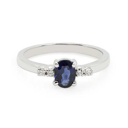 Zaveris 18 Carat White Gold Oval Cut Blue Sapphire and Diamond Ring