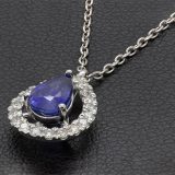 Zaveris 18 Carat White Gold Prong Set Blue Sapphire and Channel Diamond Necklace