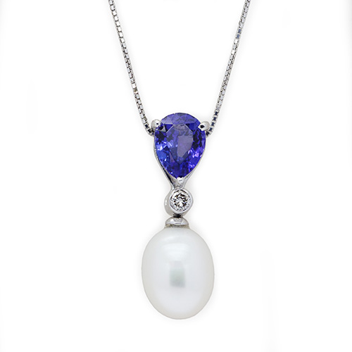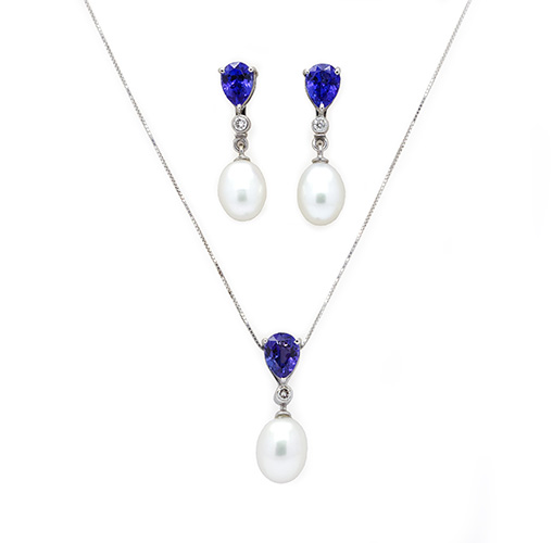 Zaveris 18K White Gold Tanzanite and Pearl Necklace Set