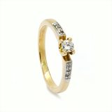 A crosscut diamond design beautifies the shank’s shoulders coursing its way to the pear-cut Rhodolite that rests on three prongs on this 18 Carat yellow gold engagement ring.