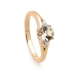 The soft pink shade of the Morganite gem is pleasingly attractive, the round-cut of the stone perfectly positioned in four prongs, and beautifully adorned with side stone diamonds on this 9 Carat rose gold band.
