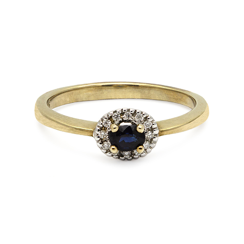Zaveris 9 Carat Solid Yellow Gold Blue Sapphire and Diamond Ring