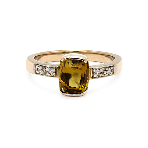 Zaveris 9 Carat Solid Yellow Gold Yellow Tourmaline and Diamond Ring