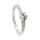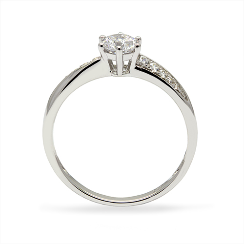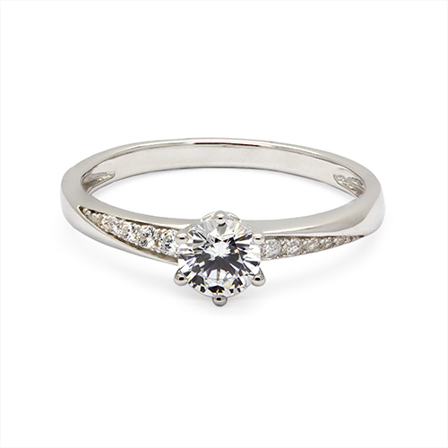 The sleek white gold band is further enhanced with delicately set zirconia shoulder stones, adding a touch of sophisticated glamour. This timeless design is perfect as a promise ring or engagement ring, delivering both beauty and brilliance at an irresistible value.