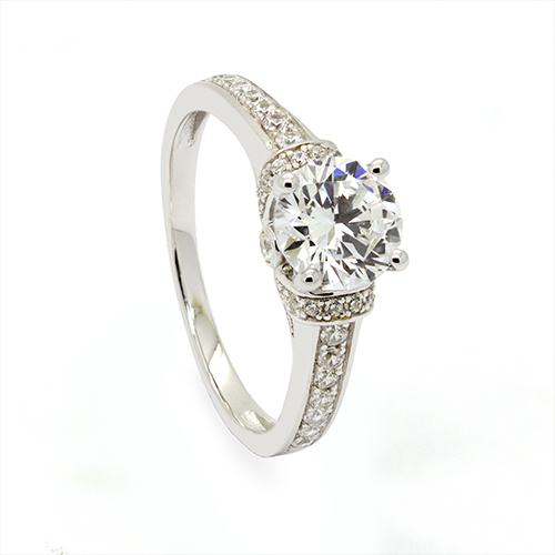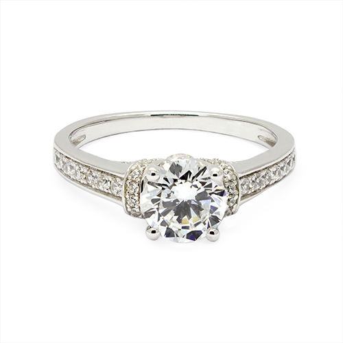 Zaveris 9 Carat White Gold Pavé Zircon Solitaire Ring