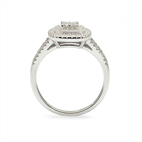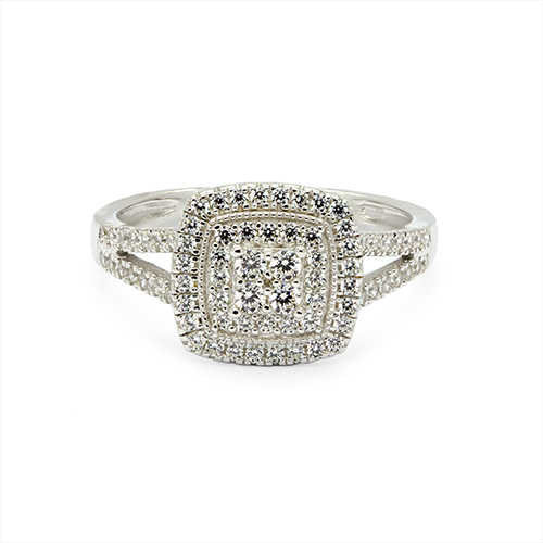 Zaveris 9 Carat White Gold Square Halo White Cubic Zirconia Ring