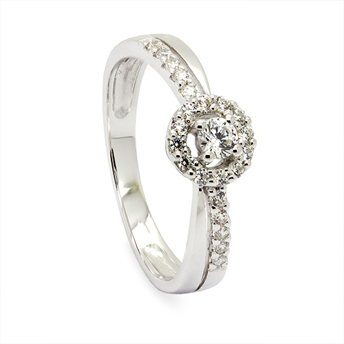 Zaveris 9ct White Gold Halo Cubic Zirconia Ring