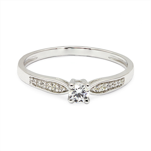 This elegant ring is crafted in 9-carat white gold, offering a sleek and modern finish that enhances its radiant sparkle. At the center sits a brilliant round-cut cubic zirconia, held securely in a refined four-prong setting.