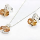 Embrace timeless elegance and everyday sophistication with this beautiful set. It features a dazzling pair of stud earrings and a matching pendant necklace, each showcasing a radiant oval-cut champagne zirconia stone. The sparkling pav?-set white zirconia accents elevate the design, all set in sterling silver. Perfect for both special occasions and chic daily wear, this set infuses warmth, sparkle, and refined charm into your jewellery collection.