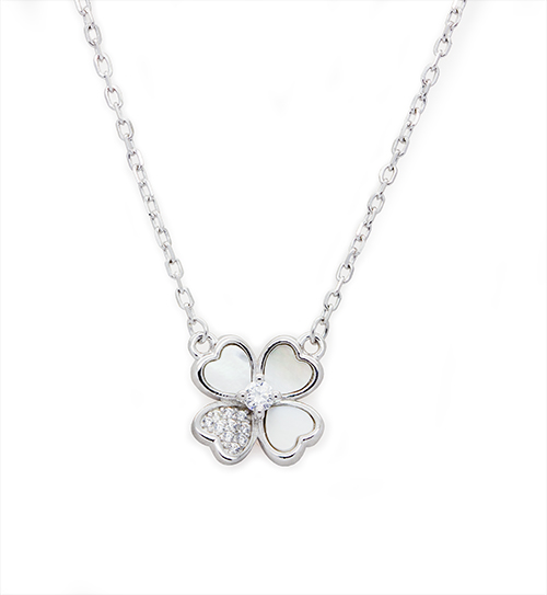 Elevate your style with the Silver Clover Sparkle Set, where charm and luck meet elegance. This stunning set showcases a meticulously crafted four-leaf clover design in radiant silver tones, symbolizing luck, love, hope, and faith. The petals are expertly inlaid with mother-of-pearl and dazzling cubic zirconia, offering a captivating finish that shines with every movement. With matching earrings and a pendant necklace, this set delivers a cohesive and sophisticated look that is perfect for any occasion?whether you’re dressing up for an event or looking for a meaningful gift.