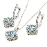 Crafted in sterling silver, the pendant hangs gracefully from a delicate chain, perfectly matched with coordinating stud earrings for a complete, polished look.