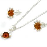 Radiate warmth and natural beauty with the Amber Cubic Zirconia Set. Featuring rich amber Cubic Zirconia gemstones surrounded by delicate sterling silver petals, this charming necklace and earring set captures the glow of sunlight in an elegant floral design.