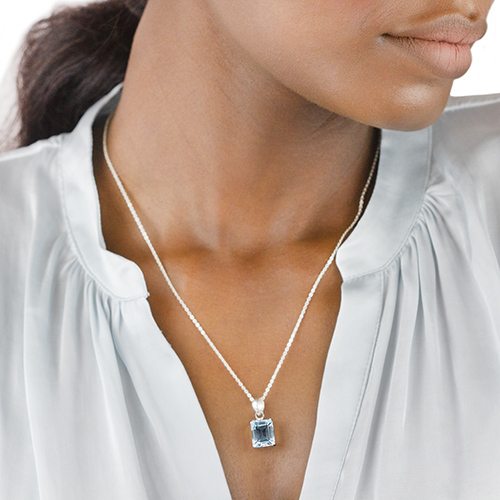 Elevate your style to new heights with this exquisite piece showcasing the striking beauty of an asscher-cut Blue topaz. The sterling dilver setting complements the gemstone, creating a harmonious balance of beauty and sophistication. Accessorize with this necklace and make a bold statement of chic elegance.