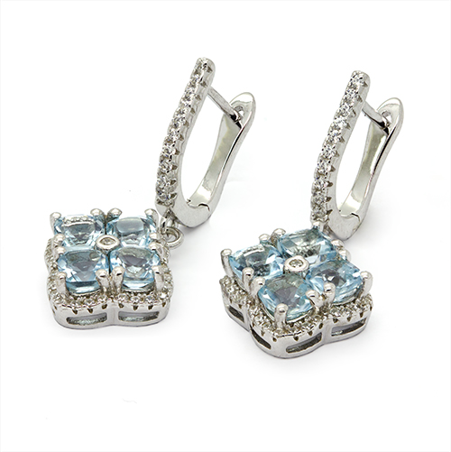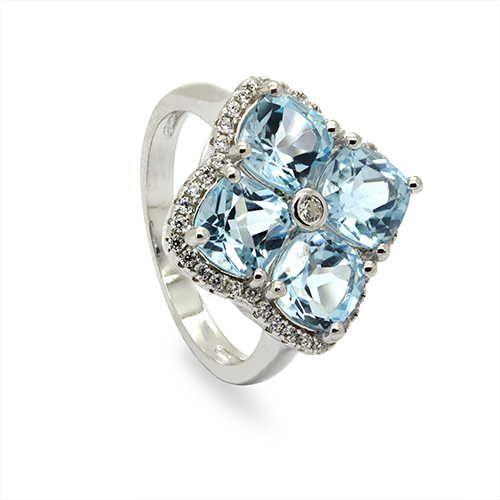 Crafted in sterling silver, it features a blue topaz gemstones arranged in a floral-inspired cluster, symbolizing vitality and natural beauty.