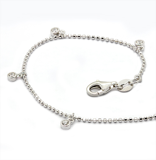 Elevate your everyday elegance with the Celestial Drop Bracelet. Crafted in sterling silver, this delicate piece features a fine beaded chain adorned with floating cubic zirconia charms that shimmer with every movement.