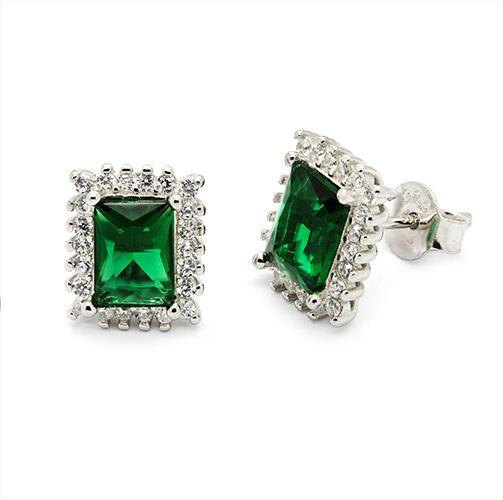 Featuring vibrant emerald cut green cubic zirconia centre stones, each piece is framed by a halo of brilliant white cubic zirconia that enhances the depth, colour, and sparkle of the set.