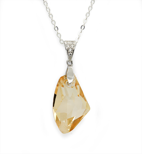 Elevate every moment into a celebration of elegance with the remarkable Golden Radiance Austrian Crystal Pendant Necklace. Crafted in sterling silver, this captivating piece showcases a beautifully cut golden Austrian crystal that catches and reflects light, exuding a warm, luxurious glow.