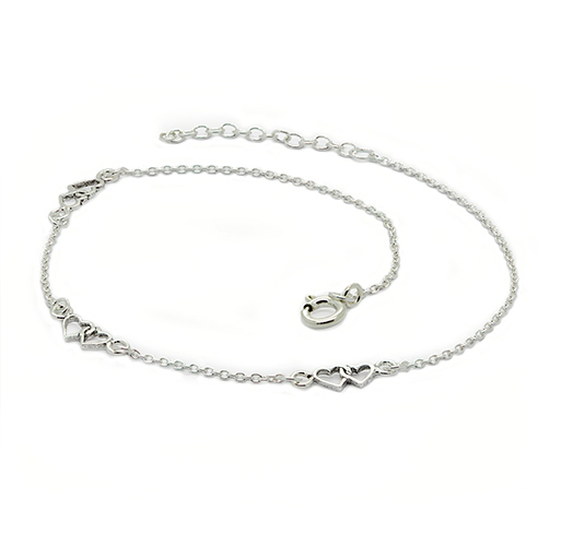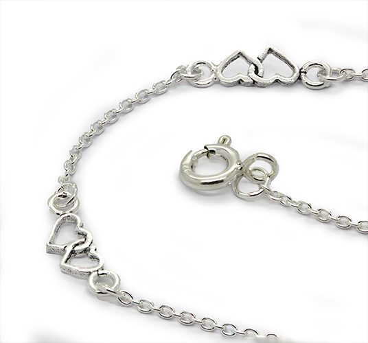 Zaveris Sterling Silver Linked Hearts Charm Anklet