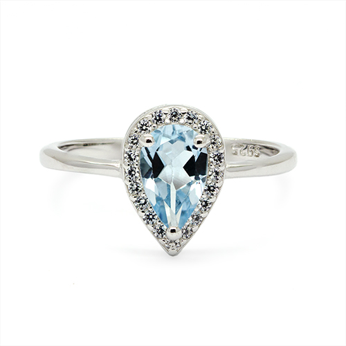Zaveris Sterling Silver Teardrop Blue Topaz and Cubic Zirconia Ring