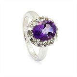 Encircling this vibrant gem is a delicate halo of sparkling cubic zirconia, which adds extra brilliance and elevates the center stone’s color. The sleek sterling silver band offers a refined and modern finish, making this ring the perfect emblem of love for a special proposal.